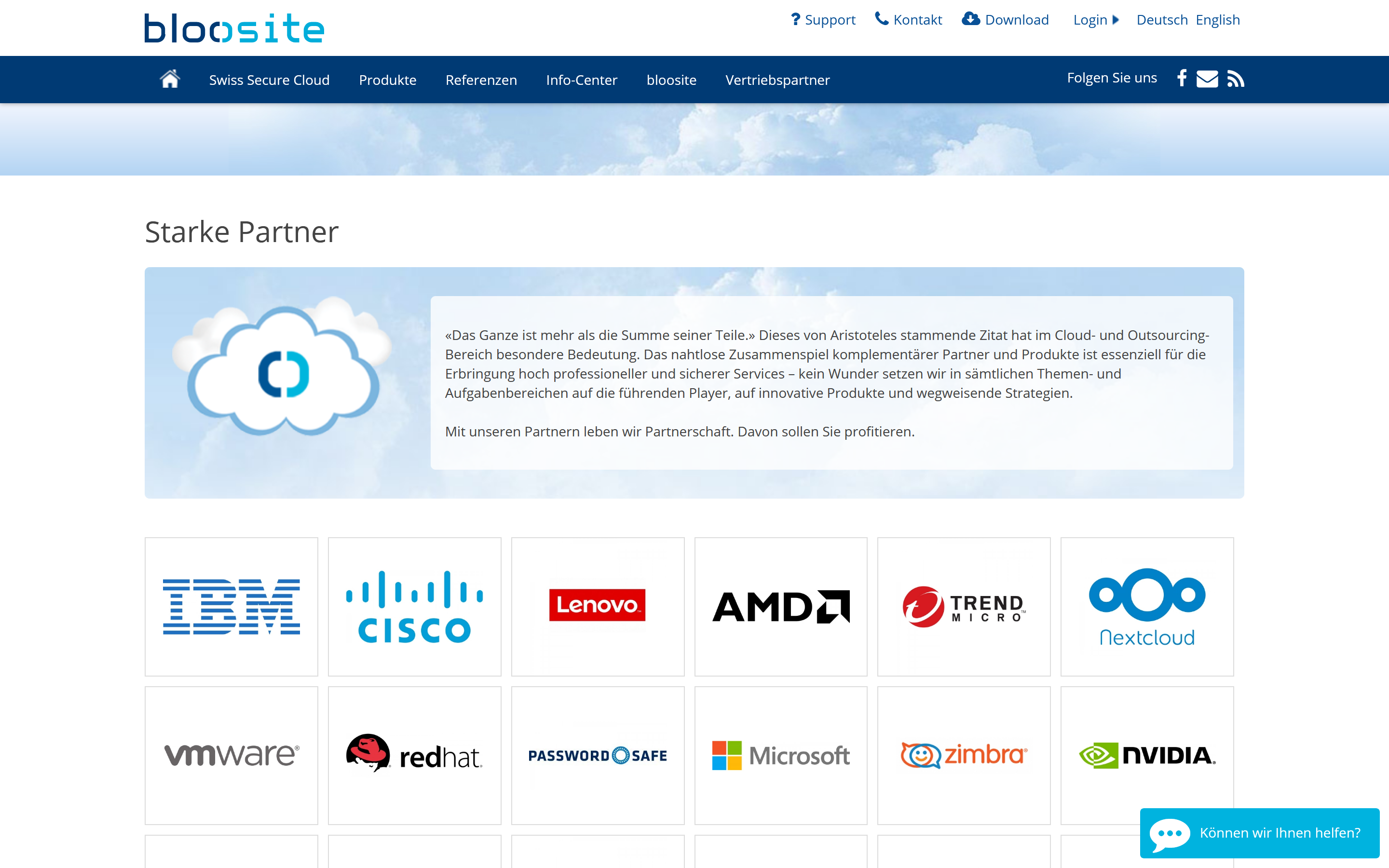 Mit geschützten und öffentlich zugänglichen Cloud-Produkten betreibt bloosite Infrastrukturen und Plattformen als Dienstleistung.