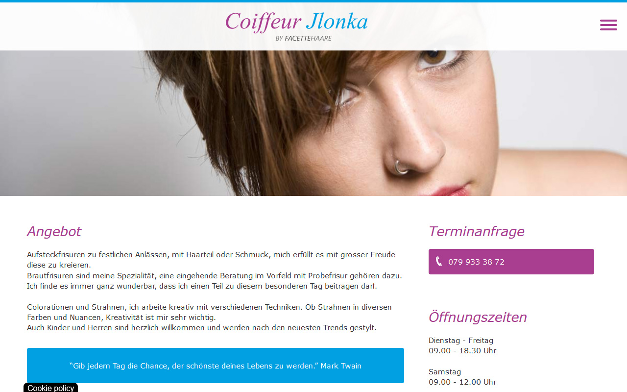 Jlonka: "Durch meine über 20 jährige Erfahrung und stetige Weiterbildung in verschiedenen Bereichen setze ich, mit meinem intuitiven Einfühlungsvermögen, ihre Wünsche mit Freude um. Mir ist es wichtig, dass sie sich wohlfühlen und sich bei mir entspannen können, dafür wende ich zum Beispiel energetische Kopfmassagen an, die Körper, Geist und Seele in Einklang bringen können."