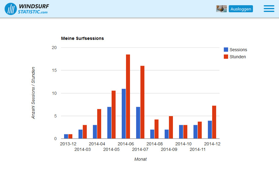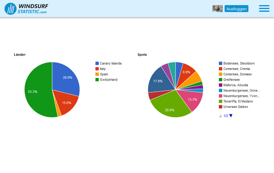 Auf freakchart.com kannst Du Deine ganz persönliche Windsurfstatistik erstellen. Wievielmal warst Du auf dem Wasser? Welches Segel oder Board hast Du am meisten gefahren? - Das Tool erstellt Dir schöne Diagramme und ist völlig kostenlos.