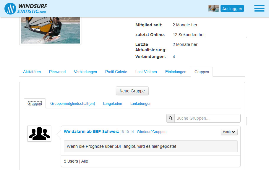 Dazu kannst Du Deine eigene Community erstellen. Lade Freunde in Deine Gruppe ein und mache die nächsten Windsurfsessions aus oder tausche Dich übers Windsurfen aus.